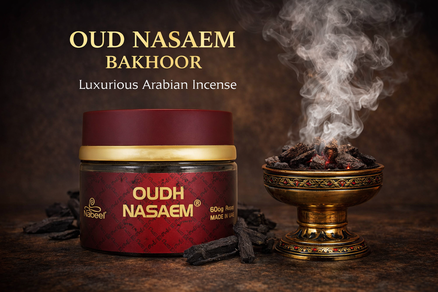 A luxurious oud bakhoor that fills your space with deep, smoky, long-lasting Arabian fragrance for everyday or special use